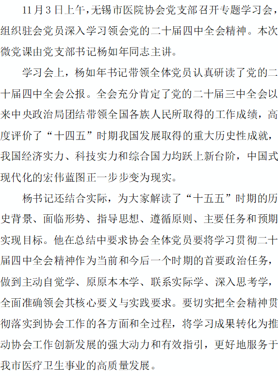 无锡市医院协会党支部微党课学习党的二十届四中全会精神
